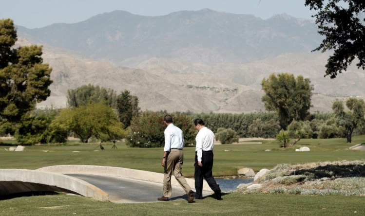 sexta-feira e sábado, em Sunnylands, uma mansão moderna e sumptuosa em